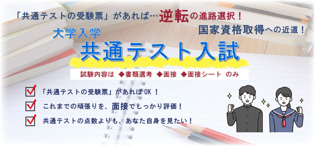 【受験生の皆様へ】共通テストの受験票で出願可能。「逆転の進路選択」を応援します。