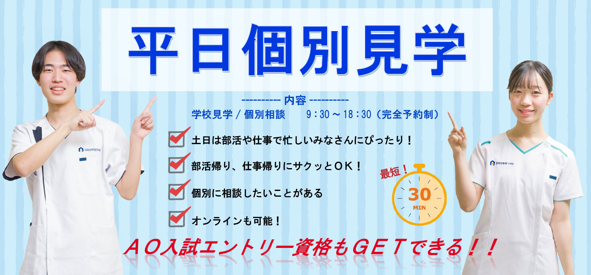 内容: 学校説明・施設見学・個別相談