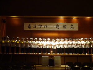 本校では、学習の動機付けとして、戴帽式を行っています。